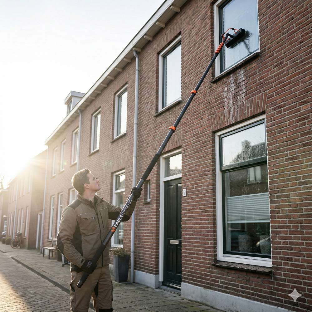 Die Reinigung von hohen und schwer zugänglichen Fenstern kann schnell zwischen 45 und 80 € pro Einsatz kosten. Die Anschaffung eines professionellen Eagle Extend-Sets ist eine einmalige Investition. Ergebnis: Nach etwa drei Reinigungen haben Sie die Kosten für den Griff wieder hereingeholt. Danach können Sie kostenlos reinigen, wann immer es Ihnen passt.